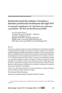 Formación moral del confesor. Casuística y literatura penitencial novohispana del siglo XVI Un ejemplo significativo: El “directorio de confesores y penitentes” del III Concilio Mexicano (1585)